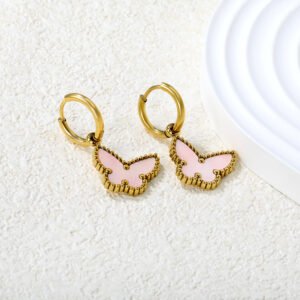 White Butterfly Charm hoops
