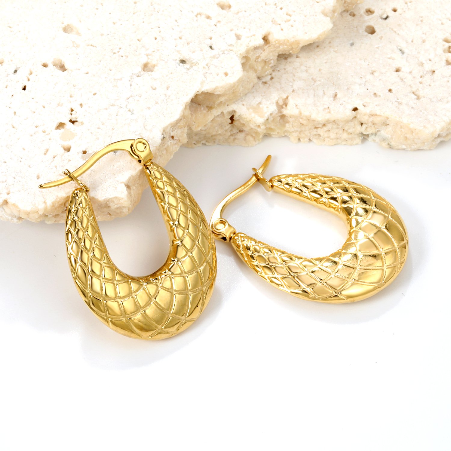 Sleek, structured hoops with a bold, sculpted shape.