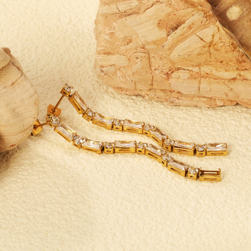 A simple, elegant drop with a clear crystal that catches the light effortlessly.