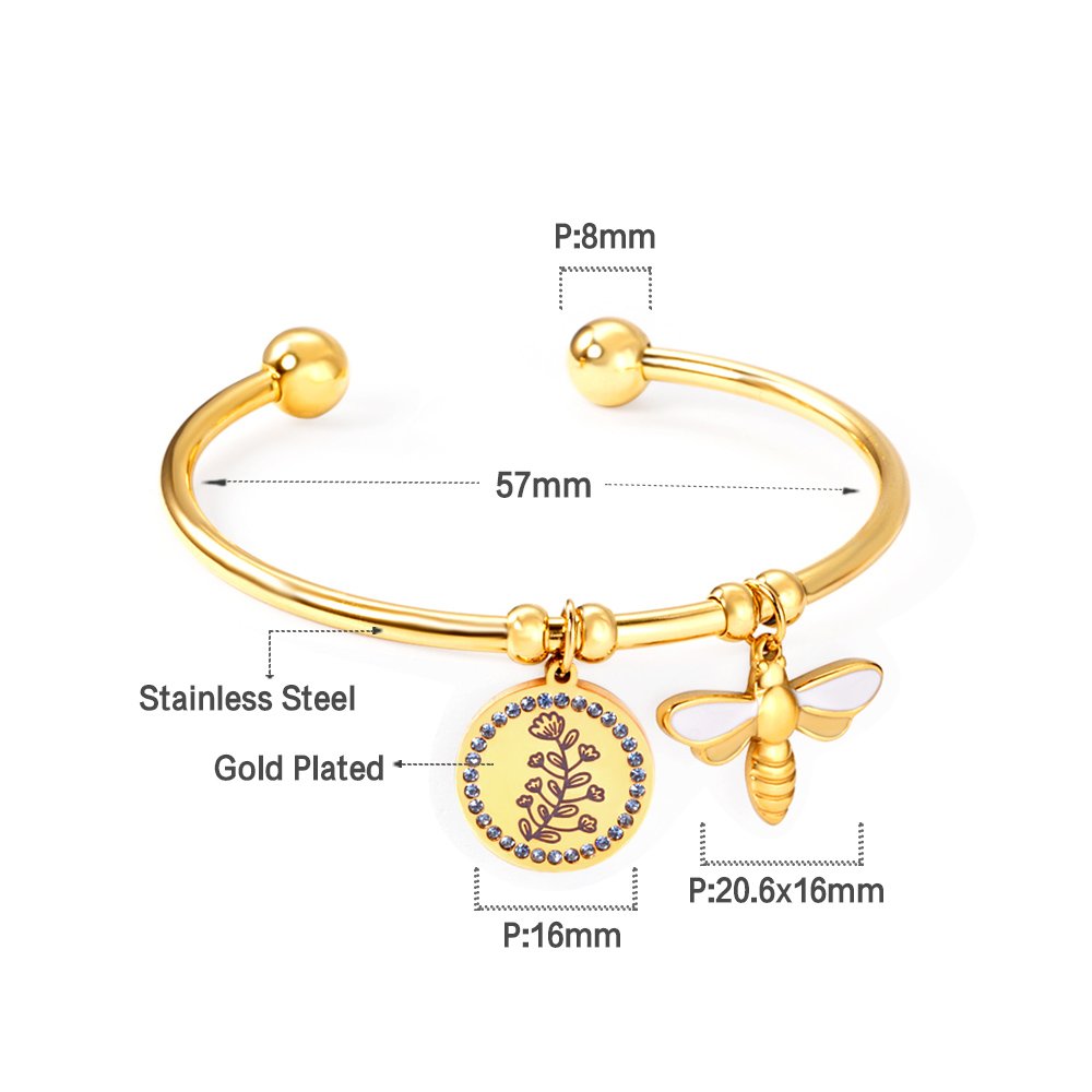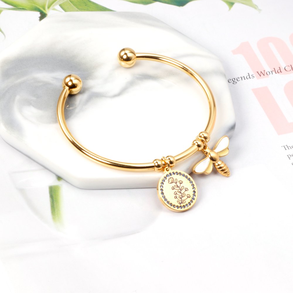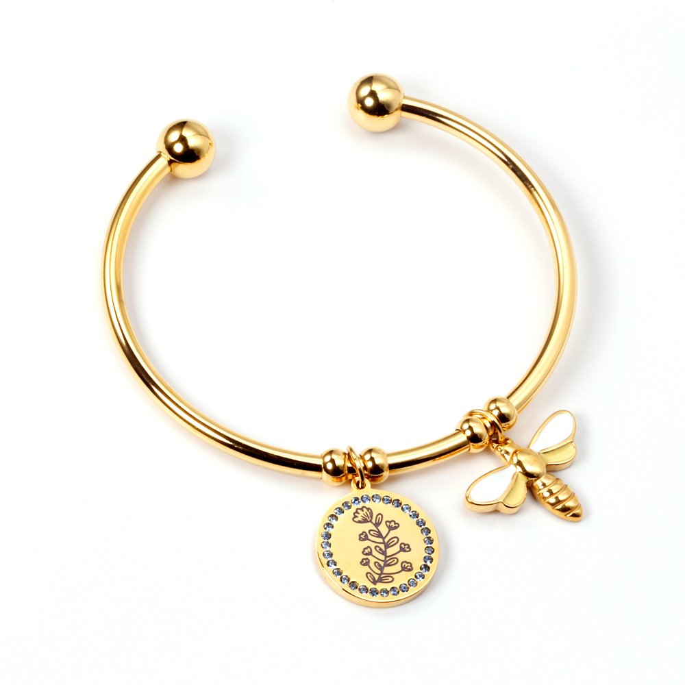 Flower with Bee Charm Bangle