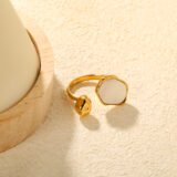 A chunky open ring accented with sleek white enamel. Modern, bold, and not adjustable.